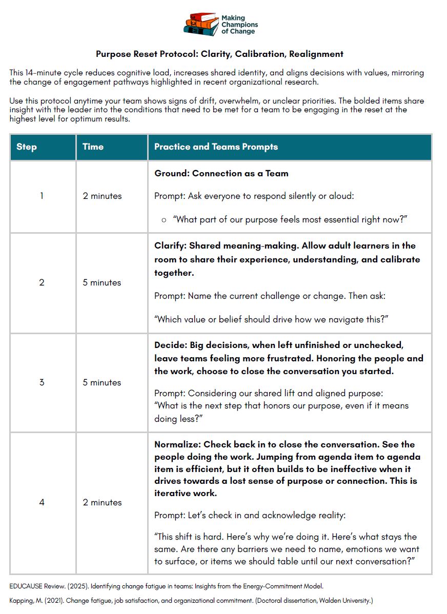 EDUCAUSE Review. (2025). Identifying change fatigue in teams: Insights from the Energy-Commitment Model.