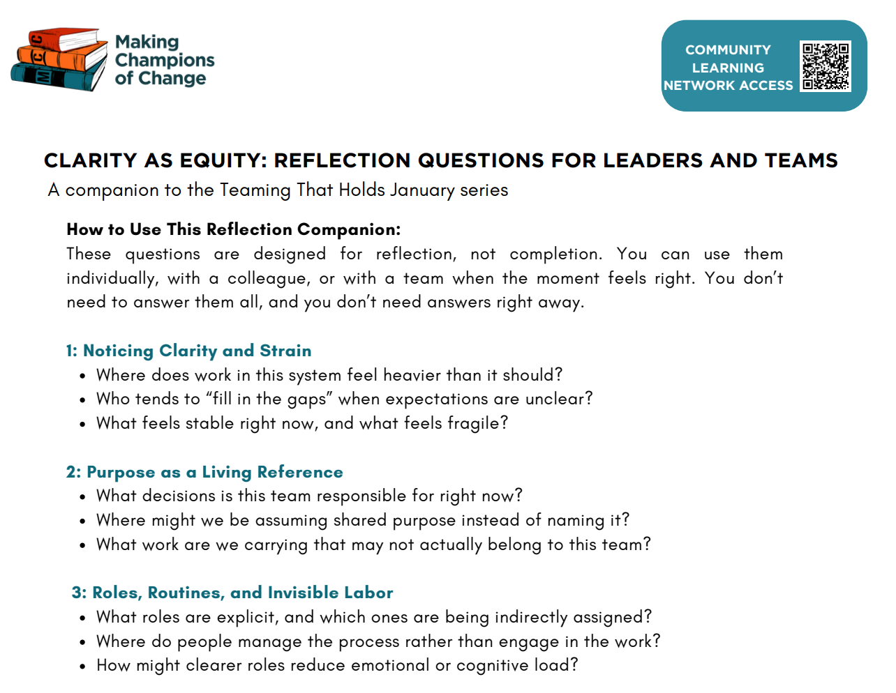 Making Champions of Change serves as a connective vehicle, building trust between leaders and the organization and among leaders themselves to share knowledge, strengthen collective efficacy, and cultivate long-lasting partnerships that lead to meaningful, sustainable change.