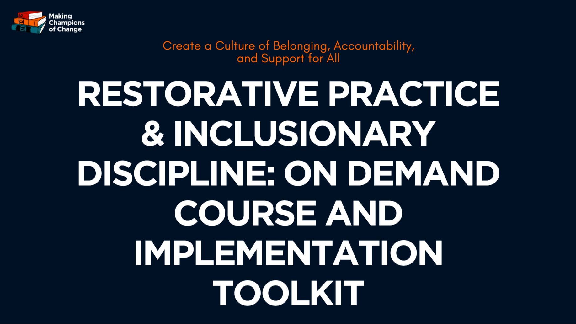 Restorative Practices & Inclusive Discipline: On-Demand Course & Implementation Toolkit